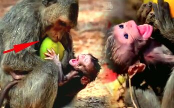 In the quiet corner of the forest, a tiny baby monkey clung to his mother with shaking hands. His eyes were wide and wet, his little chest rising fast as …