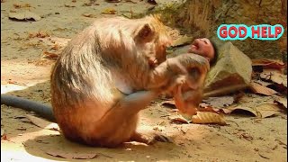 Shocking Heart poorly baby monkey really crying because mommy unknow how to take care him