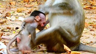 Milk… Milk.. Poor little baby monkey crying tantrum angry mum not nursing